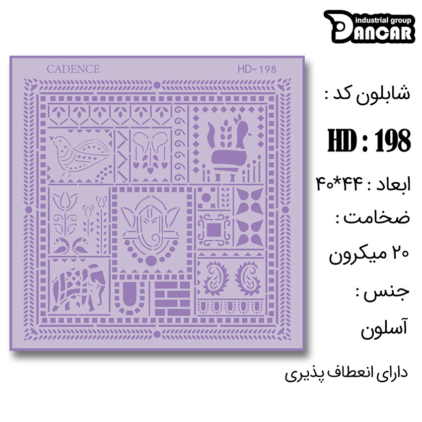 شابلون استنسیل کادنس از طلق نازک و انعطاف پذیر تهیه شده و به راحتی بر روی هر سطحی قرار می گیرد.این محصول بر روی سطوح دیوار،پارچه،چوب،فلز و ... قابل استفاده است و برای فیکس کردن آن می توان از اسپری چسب شابلون استفاده کرد.