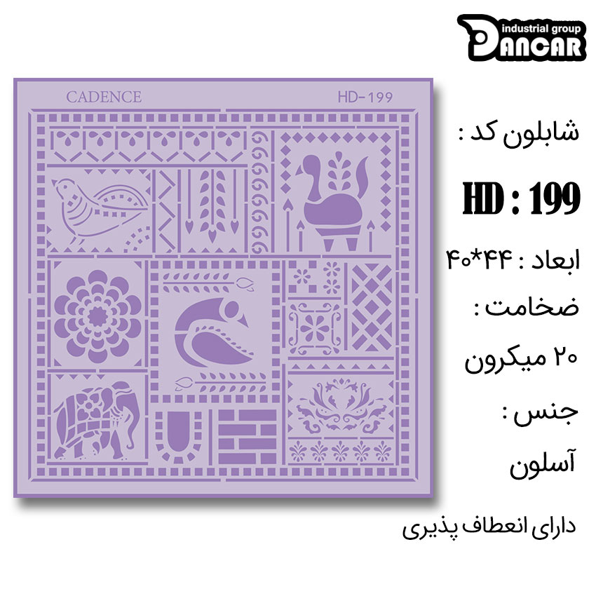 شابلون استنسیل کادنس از طلق نازک و انعطاف پذیر تهیه شده و به راحتی بر روی هر سطحی قرار می گیرد.این محصول بر روی سطوح دیوار،پارچه،چوب،فلز و ... قابل استفاده است و برای فیکس کردن آن می توان از اسپری چسب شابلون استفاده کرد.